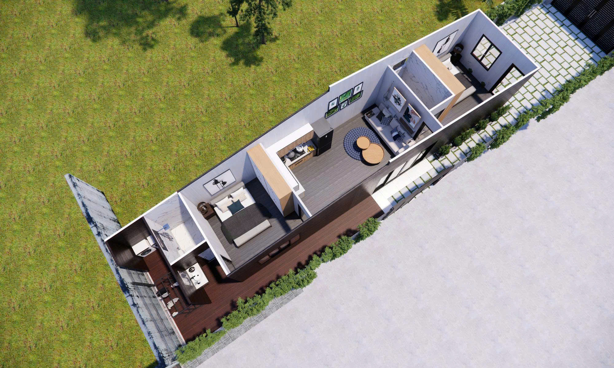 Công năng sử dụng : 2 phòng ngủ , khách liền bếp