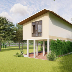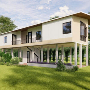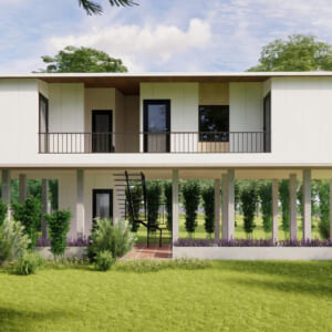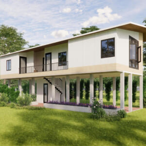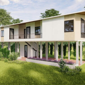 Nhà sàn lắp ghép 3 ngủ : 5 x 15 m = 75 m2